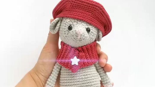 Мышонок в берете и шарфе (вязаный крючком)