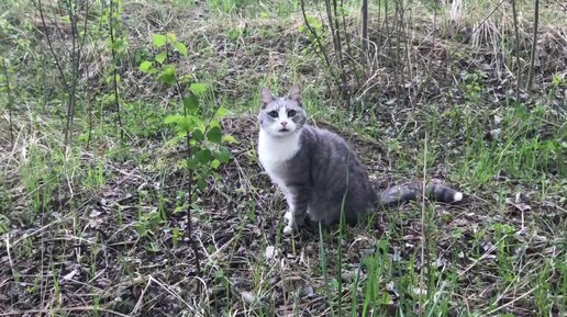 Кот Сеня гуляет среди цветущих вишен. В память о Сене