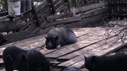 Поросенок лежит - ножки вперед, такой хорошенький .