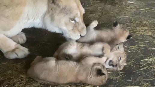 Такая МИЛОТА ! Детки льва и их заботливая мама.