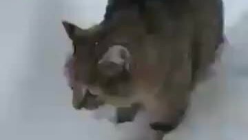 Кот проваливается в сугроб