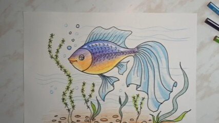 Аквариумная рыбка. Поэтапный, простой рисунок карандашами для начинающих художников.
