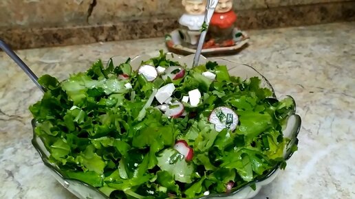 Готовим весенний салат из того, что растёт в огороде и ещё чуть-чуть.