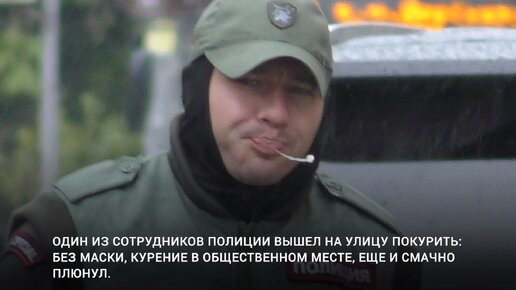 Полицейский без маски, курит и плюется. Так задерживают людей в Казани
