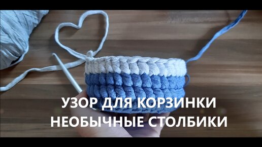 ✔Самые простые узоры крючком. Необычные столбики. Узор для корзинки из трикотажной пряжи