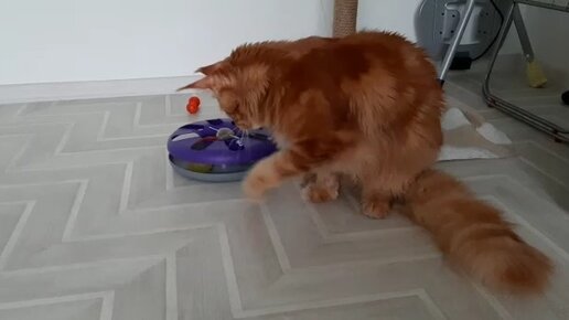 Кот играет не совсем так, как задумано играть с этой игрушкой))