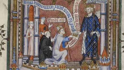 Книжная миниатюра XIV века "Жизнь Святого Дионисия"