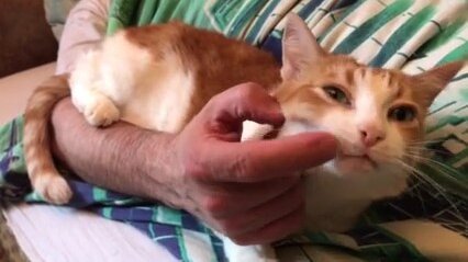 Кошке Рысе хозяин зубы чешет , посмотрите , как ей нравится .