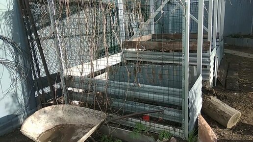 Компостная куча в сени девичьего винограда, тесть с тележкой и окрестности дачи