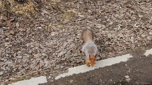 Весна. Белка у кормушки в парке