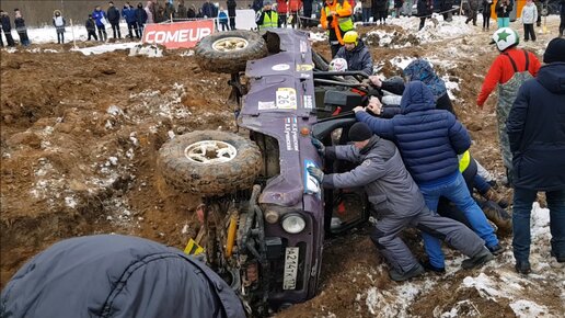 Фиолетовый УАЗ не только радует глаз, но и демонстрирует эффектный переворот
