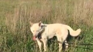 Джек (собака породы овчарка) на охоте (прогулка с питомцем)