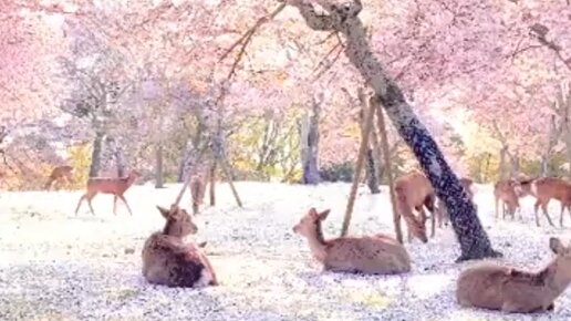 Олени под цветущей сакурой