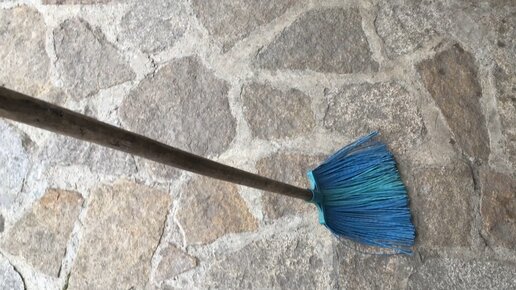 Достал метлу для подметания пола. Рассказываю насколько удобно ей пользоваться.