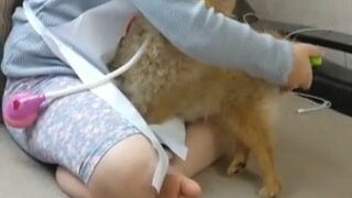 Шпиц у ветеринара на приёме.