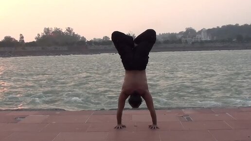 Александр Таишев. Практика асан на берегу Ганги.
