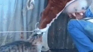 Кот пьет молоко у коровы