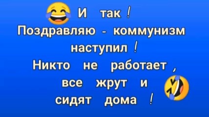 КОММУНИЗМ НАСТУПИЛ- ВСЕ СИДЯТ ДОМА И ЖРУТ)))