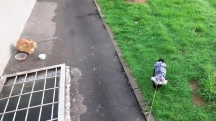 Чихуахуа Кирюша поцеловал дворовую кошку