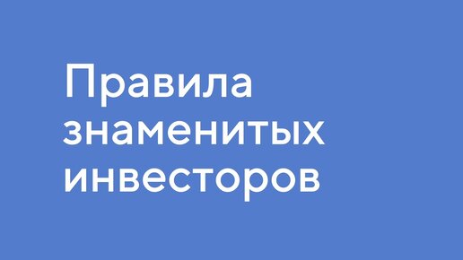 Правила знаменитых инвесторов