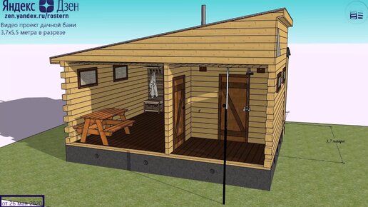 Визуализация дачной баньки 3,8х5,5м в разрезе