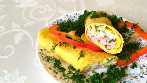 Закусочные рулетики с ветчиной, сыром и свежим огурчиком
