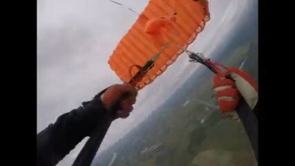 Запутались стропы парашюта, пришлось отцепить основной и открыть запаску, падая на спине