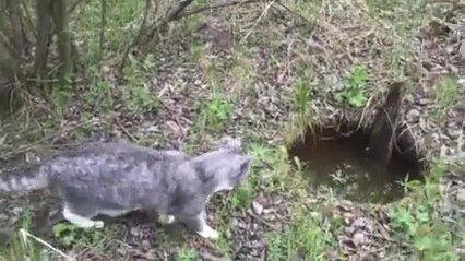 Гуляли с котом Сенькой по лесу , нашли заброшенный колодец, наполненный водой .
