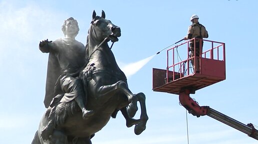 Безвредно для памятника: главный символ Петербурга принял очищающий душ