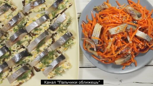 Две замечательные закуски из одной селедки. Салат и бутерброды