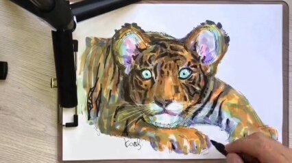 Рисуем дикую кошку тигра за 2 минуты. Видео