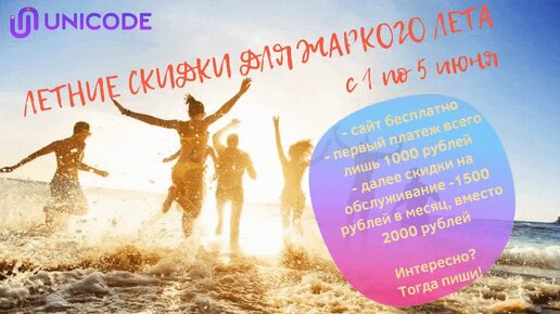 Акция с 1 по 5 июня, сайт бесплатно, обслуживание 1000 рублей.