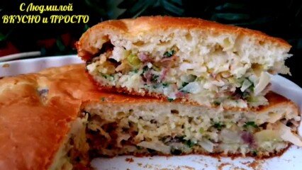 Заливной пирог со свежей капустой и мясом - быстрый ужин для всей семьи