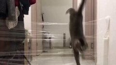 Реакция кота на препятствие из прозрачной пленки и его прохождение. 4 уровня сложности.