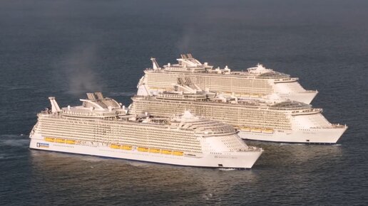 Три крупнейших круизных лайнера мира встретились в океане: уникальное видео