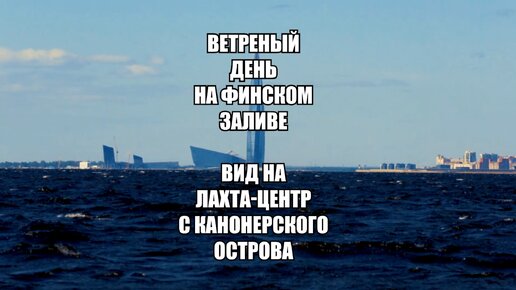 Волны с барашками на Финском заливе в ветреный последний день мая. Вид на Лахта-центр с Канонерского острова, Санкт-Петербург