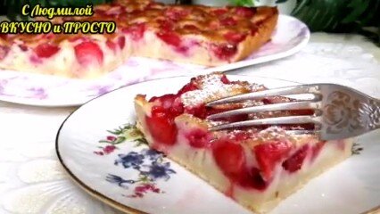 Клафути с клубникой. Супер простой пирог с любой ягодой по сезону