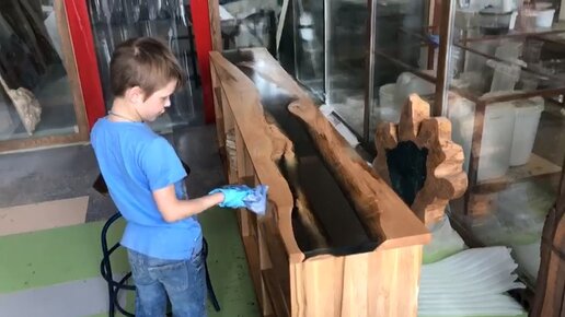 8-летний ребёнок смог покрыть маслом крутой офисный стол из слэбов, а чего добился ты? =)