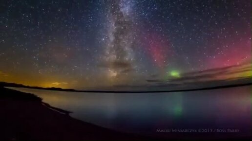 Северное сияние на фоне Млечного Пути.