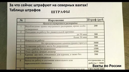 За что сейчас штрафуют на северных вахтах? Таблица штрафов