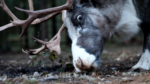 Северные олени за трапезой. Уплетают лакомство за обе щёки.