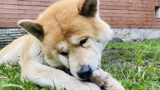 Хатико даже косточку грызет смешно, видно зубы ещё маленькие