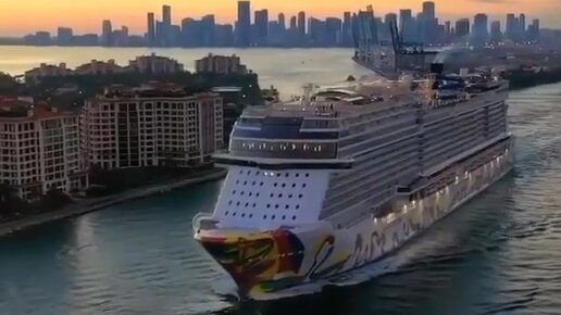 Выход лайнера Norwegian Encore из порта Майами