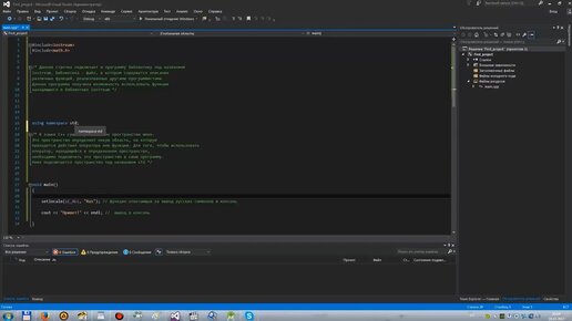 C++ для начинающих. Урок #2. Порядок и структура выполнения программы. using namespace. #include.