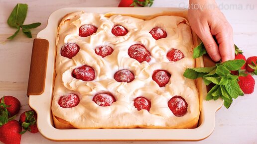 Пирог "Клубничное облачко" ❤️ Простой пирог с клубникой к чаю