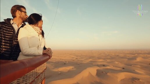 Полет на воздушном шаре над пустыней в Дубае. Очаровательный восход.