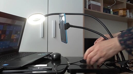 Установка кольцевой лампы на гибком штативе с прищепкой