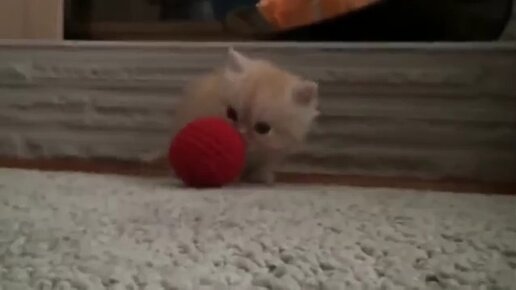 Маленький милый котенок играет с мячиком