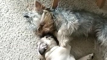 Именно так выглядит игра между собачками когда обеим ЛЕНЬ.