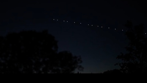 Новая часть спутников Starlink Илона Маска в небе в близи Киева.